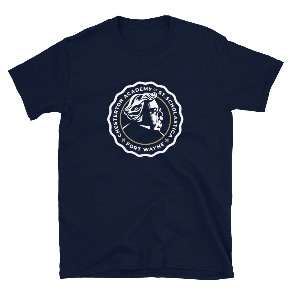 Our signature Chesterton Academy tee, featuring the classic circle badge in its full design.